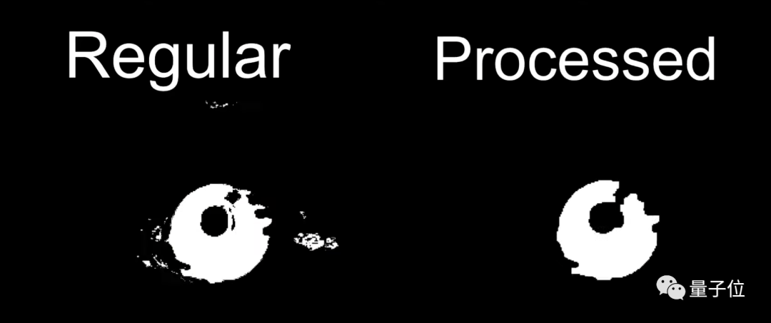 在计算机后台程序中,篮球显示为白色,而其其他和篮球不同色的物体都呈现为黑色;因为只有球被识别出并被放在遮罩中。