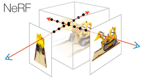 神经辐射场使用多层感知器的权重隐式建模场景的体积密度和颜色。