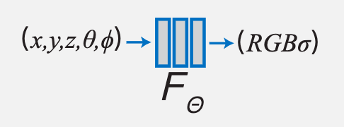 我们先来回顾一下NeRF,神经网络直接从空间位置和视角(5维输入)映射到颜色和不透明度(4维输出) ,来充当「体积」。