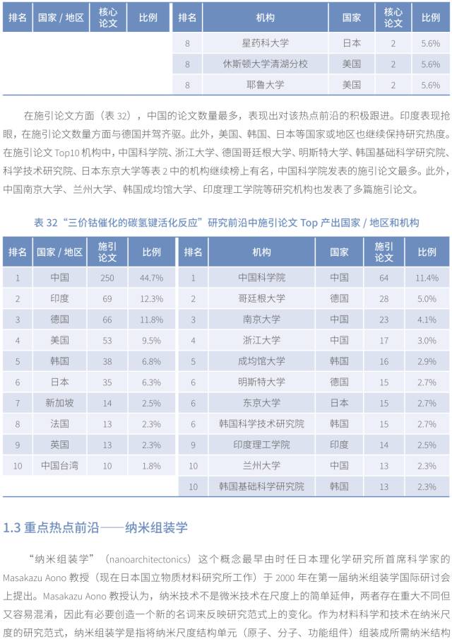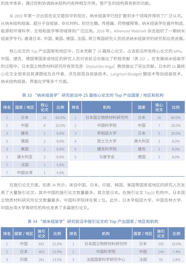 在纳米技术领域,不仅继续有具体的前沿研究入选,而且首次出现宏观的研究概念――纳米组装学。