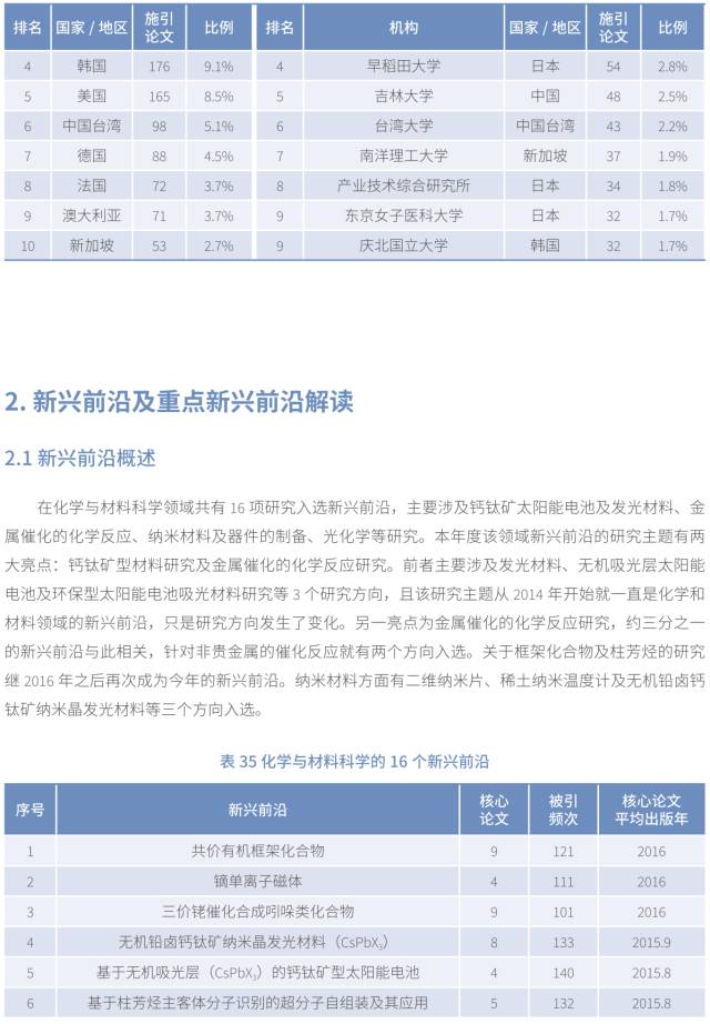 本文节选《2017研究前沿》中化学与材料科学2017研究前沿报告。(点击文末阅读原文,下载报告全文)