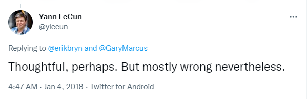 Andrew Ng在3月表示支持此类系统。 Sepp Hochreiter——LSTMs 的共同创造者,领先的学习序列深度学习架构之一,也做了同样的事情,他在四月公开表示,最有希望的广泛人工智能方法是神经符号人工智能。
