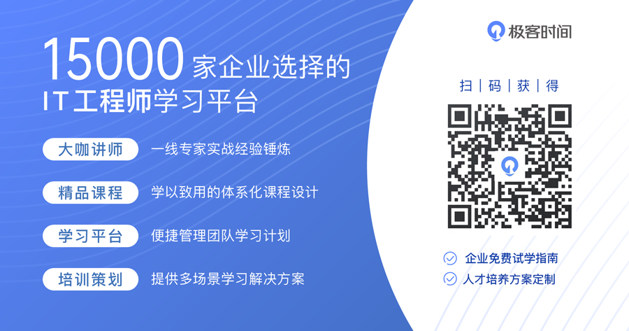 如您有数字化人才培养需求,可扫码联系「极客时间企业学习服务」客服,为您提供免费人才培养咨询及方案定制服务👇