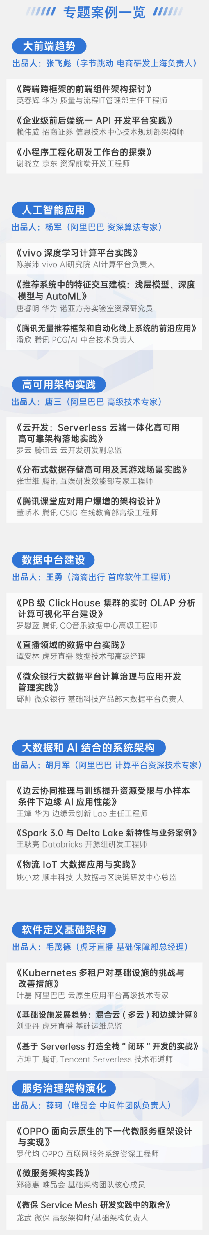 旨在通过分享时下热门技术的大厂实践案例,为 IT 从业者提供可参考、能落地、有深度的技术选型和采用指引,帮助 CTO、技术 Leader、架构师、工程师和产品经理等中高端 IT 从业人员与企业一起,找到适合自身业务发展的技术解决方案,实现技术对于产品和业务的驱动,最终实现商业成功。