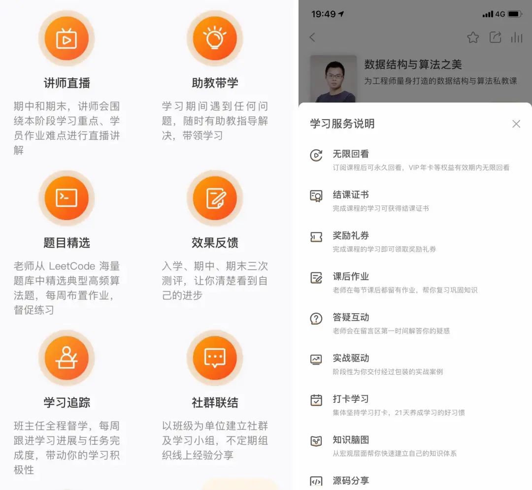 不同类型的课程匹配不同的学习服务,比如专栏课程设置“打卡学习”服务,帮助你合理制订学习计划,用 21 天养成持续学习的好习惯;学习后完成相应的试题,测试自己对知识的熟练度和应用水平。训练营课程则设置“助教带学”服务,随时为你解答疑惑,让你不会因为困难而停滞不前。