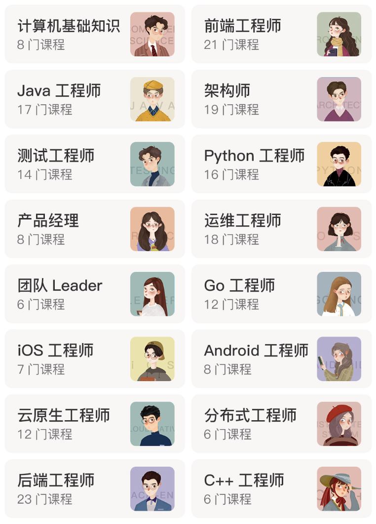 保证知识体系的进阶性:课程内容按照岗位初级 - 中级 - 高级划分,层层递进、由浅入深,你可以根据自己目前的能力级别,选择适合的学习路径课程规划,高效提升技术能力。