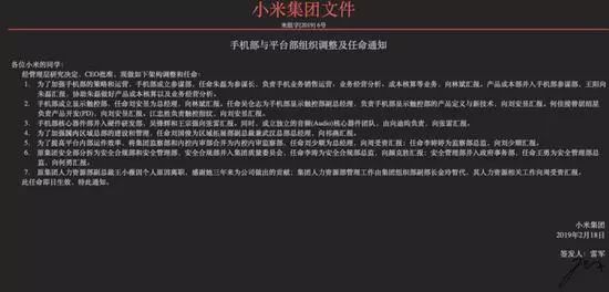 小米手机部组织调整 :成立参谋部 任命朱磊为参谋长