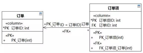 这里的判断原则和关系数据库建模有的时候是矛盾的。数据库建模中,哪个表中有另一个表的标识,判断原则是多重性。如图8-106,类图中“订单”知道“订单项”,但映射到关系数据库表,“订单项”表中有“订单ID”。