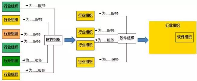 随着信息化的深入,组织内部封装在软件(即业务实体)中的领域逻辑比例越来越大,深度越来越深,组织之间的竞争越来越依赖于软件的竞争。市场的激烈竞争,又使得组织越来越聚焦于一个领域,为组织提供软件的软件组织也越来越专注于一个领域,甚至逐渐成为组织里的一个部门。将来,独立的软件组织也许将不复存在,或者说,所有组织都是软件组织。从当前的趋势看,软件的运行形态越来越"互联网化",说"所有组织都是互联网组织"也可以。成熟的"互联网公司"都有自己清晰的领域定位,京东是商场,新浪是媒体……