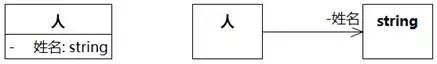 如果人和狗都是哺乳动物,地位差不多不好判断,我们可以把问题往极端推,就可以看得更清楚。如图8-104,人有一个属性姓名,类型为字符串,图中左右两侧是等同的。显然“人”知道“string”是合理的,但是背后的原因不是人比字符串更“复杂”(8.1.6.7已经讲述过这个问题),而是系统很可能更关心人的状态变化。