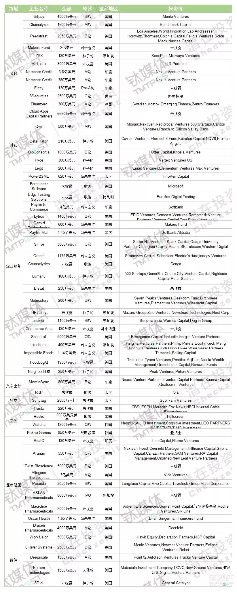 本周国外共收录59起投融资事件,企业服务、金融、医疗健康等多领域资本火热。