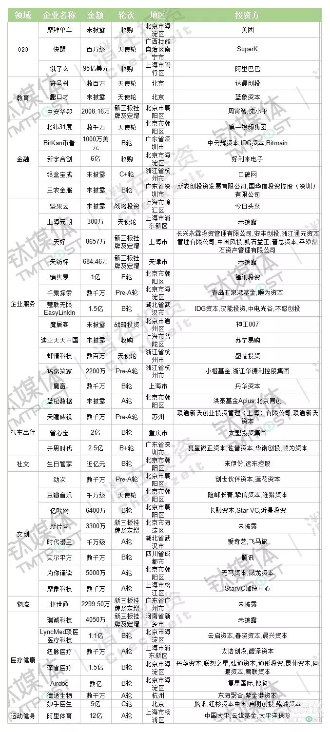 周报:第一时间汇总每周企业投融详情,综合每周投融领域概况;