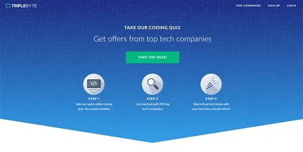 Triplebyte一个被誉为程序员求职神器的求职平台,主要面向软件工程师,并和硅谷的科技公司合作。