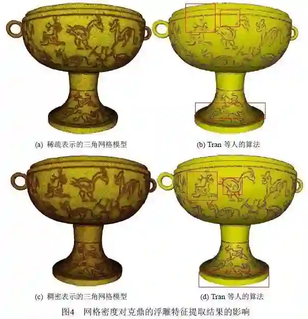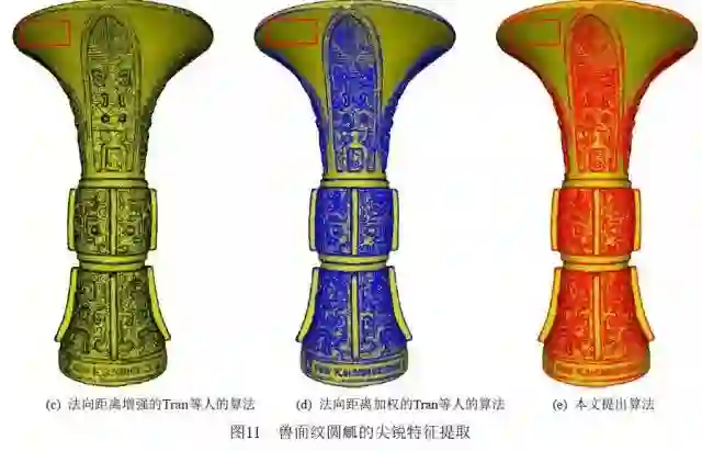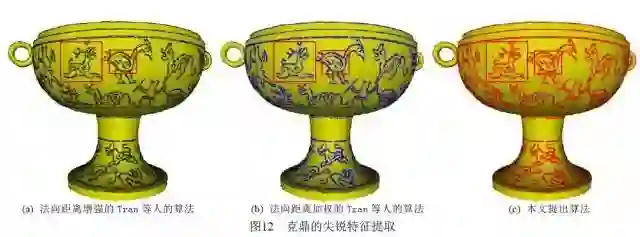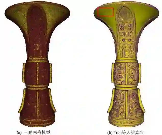 实际三维激光扫描获得的青铜器模型,分别采用本文算法和Tran等人[1]提出的算法进行了纹饰特征提取,包括采用两种算法进行了纹饰特征增强前后纹饰特征提取实验。