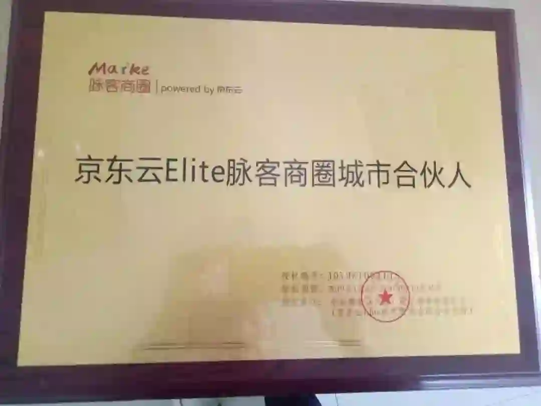 代理商在签订合同付款后,会获得一块“京东云Elite脉客商圈城市合伙人”牌匾,但授权方是中新赛宝,并非京东云。“京东云给中新赛宝授权,中新赛宝再授权给我们,所以这是转包了好几手。”上述代理商说。