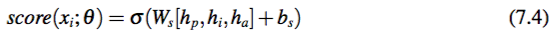 这里 hp、hi、ha 是 LSTM 层的三个输出,σ 是 sigmoid 函数,Ws、bs 是该层的参数。