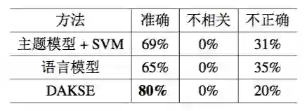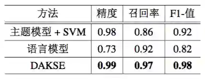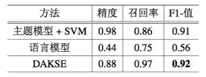 表 7.2 和表 7.3 中的结果验证了 DAKSE 能够以很高的准确率和召回率抽取出 DKS。 这里手工标注的正确率略小于精度,因为表 7.2 中的正确标准中包含一些噪声(即一些标注为种子 DKS 的实际上是非 DKS)。