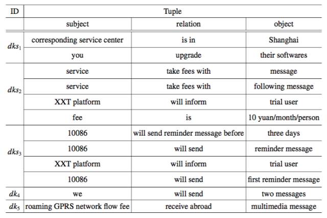 DAKSE 提取了一些非常复杂的知识。例如 dks2 包含消息提醒关系中的不同角色:发送者(XXT 平台)、信息(服务将很快收费)、接受者等等。