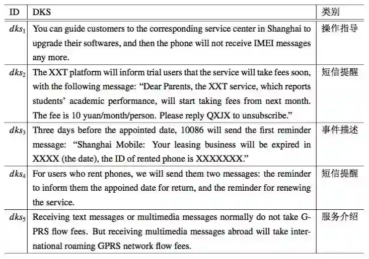DAKSE 提取出了领域富含知识的句子。所有这些 DKS 都是客户服务领域的信息。