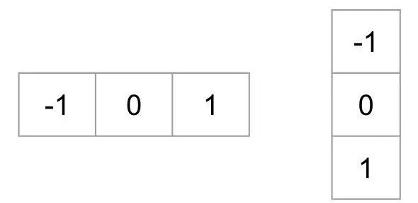 为了得到梯度直方图,那么首先需要计算图像水平方向和垂直方向梯度。可以通过使用以下内核过滤图像实现,分别用于计算水平梯度和垂直梯度。
