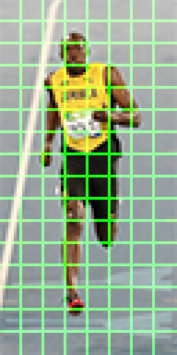 在这一步中,图像被分成若干个8×8的Cell,如下图所示,例如我们将图像resize至64x128的大小,那么这幅图像就被划分为8x16个8x8的Cell单元,并为每个8×8的Cell计算梯度直方图。当然,Cell的划分也可以是其他值:16x16,8x16等,根据具体的场景确定。