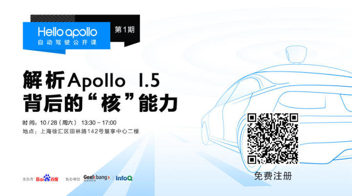 给关注无人驾驶的小伙伴送福利!10月28日,“Hello Apollo -自动驾驶公开课”专家将首赴上海,为魔都的小伙伴们揭秘百度自动驾驶平台Apollo1.5的最新“核武器”,以及开发者如何利用这些技术实现自己基于自动驾驶的各种创新想法。免费报名请戳阅读原文>>