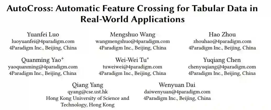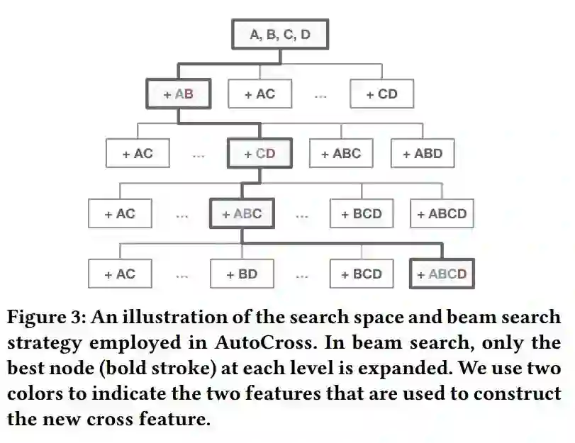 本文提出了一种在实际应用中自动实现表数据特征组合的方法 AutoCross。该方法可以获得特征之间有用的相互作用,并提高机器学习算法的预测能力。该方法利用集束搜索策略(beam search strategy)构建有效的组合特征,其中包含尚未被现有工作覆盖的高阶(两个以上)特征组合,弥补了此前工作的不足。