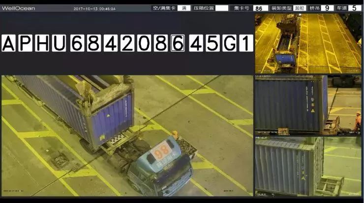 2016年8月,西井科技与码头公司信息技术部联合开发的WellOcean智慧理货系统上线试运行。大榭招商码头在一台岸桥上安装了4个摄像头,智慧理货系统的任务就是对摄像头拍到的视频进行智能识别,识别对象包括:标准集装箱的箱号、箱型,码头内集卡的作业号、空/满状态、装/卸船状态、单小箱压箱位置,以及车道编号等数据和状态。