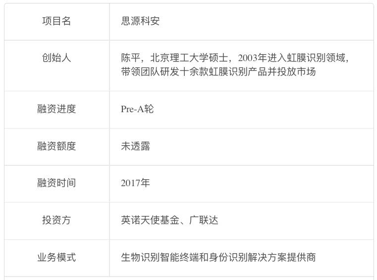 国内,陈平早在十余年前便涉身该领域。2015年,他创立的“思源科安”虹膜识别设备完成量产,并用22项发明专利为研发所得保驾护航。该产品可在0.5s内完成人员身份验证。