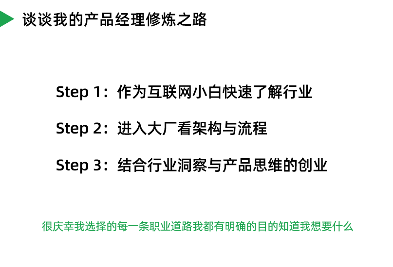 还是职场小白时,利用闲暇时间调研了3000多家创业公司的商业模式,快速了解行业。后来以新媒体运营的身份入职百度外卖,仍然不放弃对产品的思考,最终成功内部转岗产品。