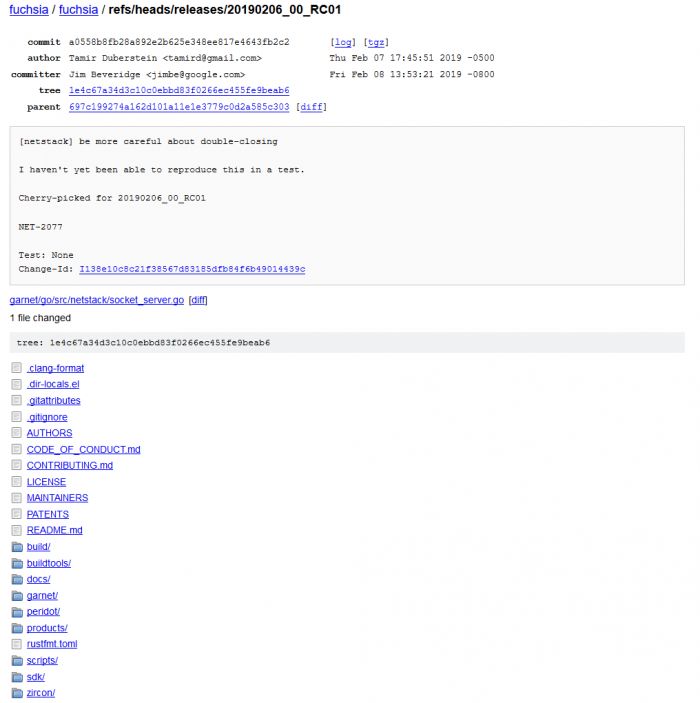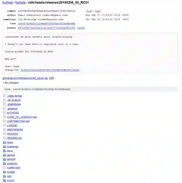另一种可能性是,Fuchsia 团队只是在测试他们创建发行版本的能力,而并不是打算“发布”什么。但是日志显示,两天后(2 月 8 日),两个代码更改被添加到 Fuchsia 发布候选的分支。