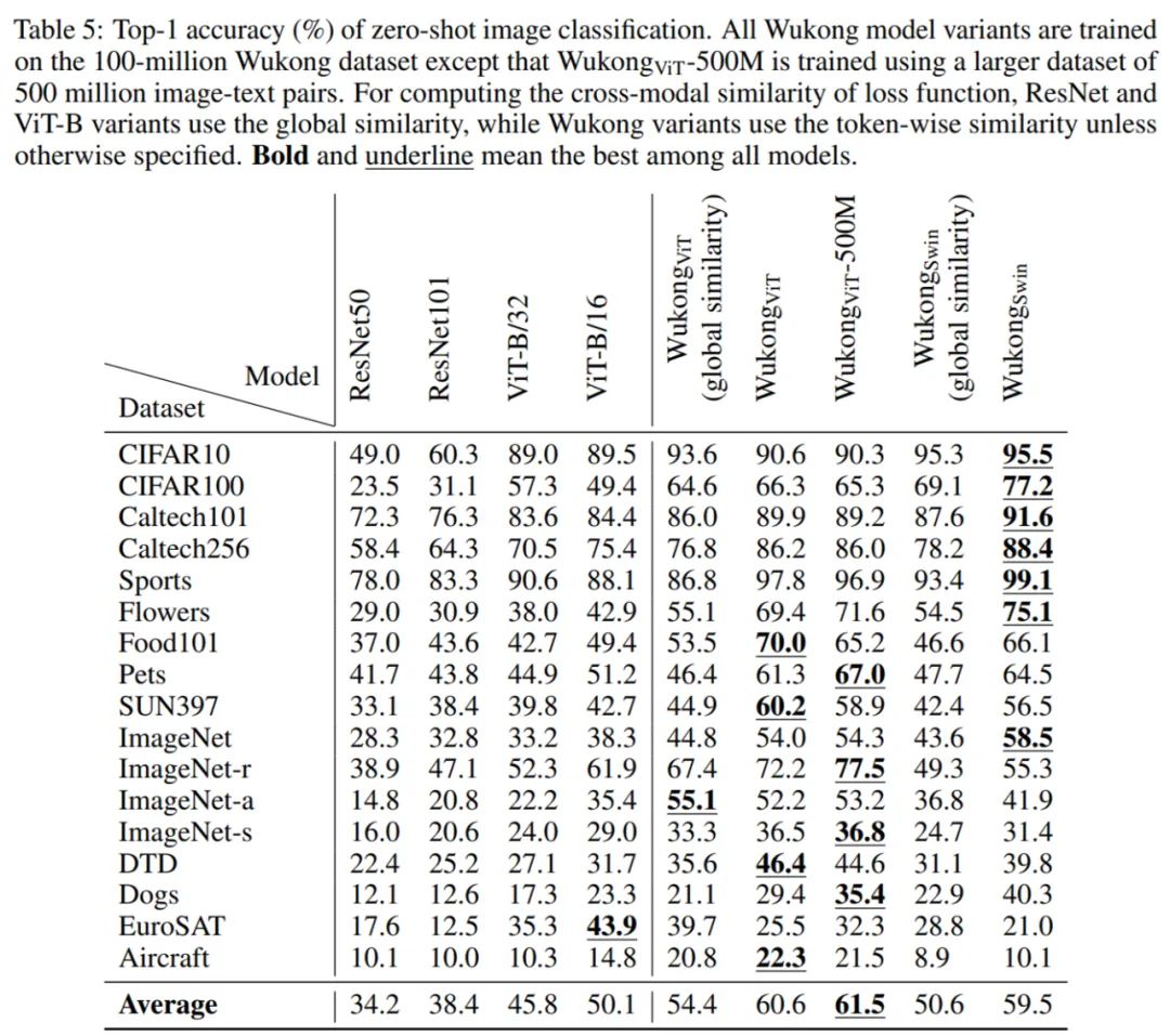 对于微调设置,Wukong_ViT-500M 则在除 AIC-ICC 之外的所有数据集上都取得了最好的结果,其中 Wukong_ViT 效果最好。