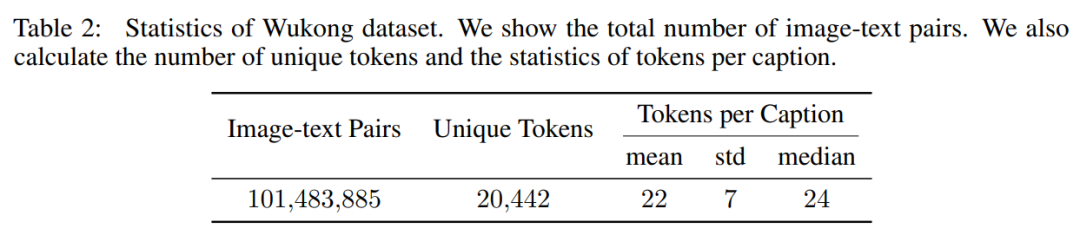 研究者构建了一个名为悟空的新数据集,该数据集包含从网络收集的 1 亿个图文对。为了涵盖足够多样的视觉概念,悟空数据集是由包含 20 万个词条的查询列表里收集的。这个基础查询列表取自 Yan Song 等人的论文《Directional Skip-Gram: Explicitly Distinguishing Left and Right Context for Word Embeddings》,然后根据华为的海量新闻文本语料库中出现的中文单词和短语的频率进行过滤后所得。