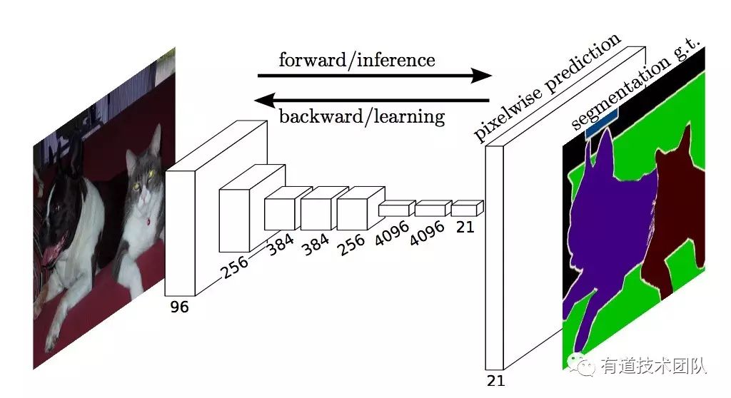 全卷积网络 (FCN) 是 CNN 基础上发展起来的算法。与 CNN 不同,FCN 要解决这样的问题:图像的识别目标不是图像级的标签,而是像素级的标签。例如: