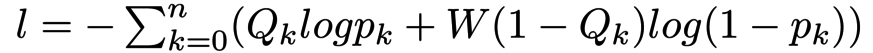 这里 l 为损失值,n 为样本数,k 表示第几个样本,Q 表示标签值,取值为 0 或者 1,p 为分类器计算出来的"该样本属于类别 1 "的概率,在 0 到 1 之间。