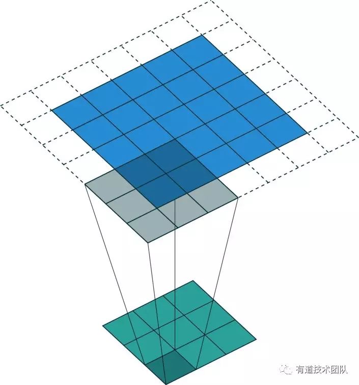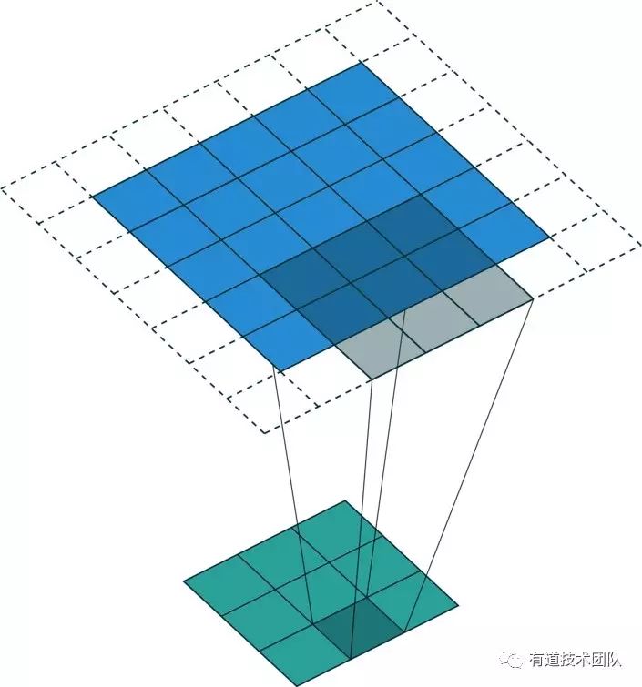 与 conv_arithmetric 提供的图示对比,可以看出上图只是卷积示意图的上下翻转。在实际运算中,Input 层的某个节点数值会(以卷积核为权重)加权相加到与该节点相关的每一个 Output 层节点上。