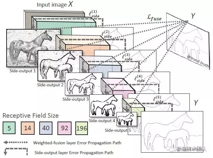 2015 年 ICCV 上的一篇论文[4]提出了名为 HED 的边缘识别模型,试着用改变损失函数(Loss Function)的定义来解决这个问题。我们的算法中也采用了这种方法。