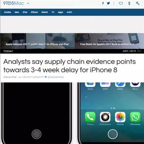 美银美林分析师:iPhone 8出货将延迟3到4周