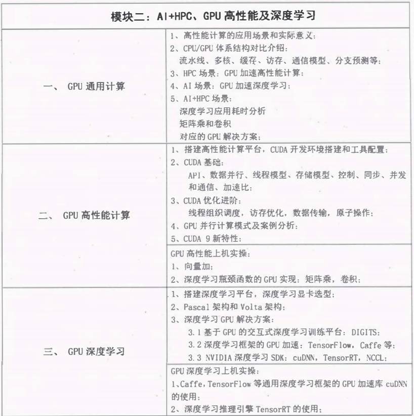 随着人工智能(AI)特别是深度学习(Deep Learning)近年来的飞速发展,在多个领域的成功应用,已经成为当前学术界和各行业最炙手可热的研究应用方向。不仅广泛应用于搜索引擎,电子商务,社交网络等互联网服务,并且在计算视觉,自然语言处理,金融,生物医药等行业AI的研究与应用也呈现爆发式增长。同时由于深度学习(Deep Learning)需要处理的海量数据非常庞大,GPU(CUDA,OPENACC,OPENCL)计算在人工智能/深度学习领域展现出相比传统GPU计算巨大的优势,极大的提高了计算能力。由中科院计算所(烟台分所)邀请重量级专家,业界知名主讲老师为各科研院所、高校和企业从事深度学习,GPU CUDA高性能计算领域或感兴趣的相关人员举办为期三天的上机实操班,以理论学习和上机实践相结合的方式,强化自主学习的实践能力。诚邀您的参加!
