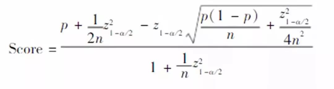 解释一下,n为评价数,p为好评率,z为对应检验对应概率区间下的统计量