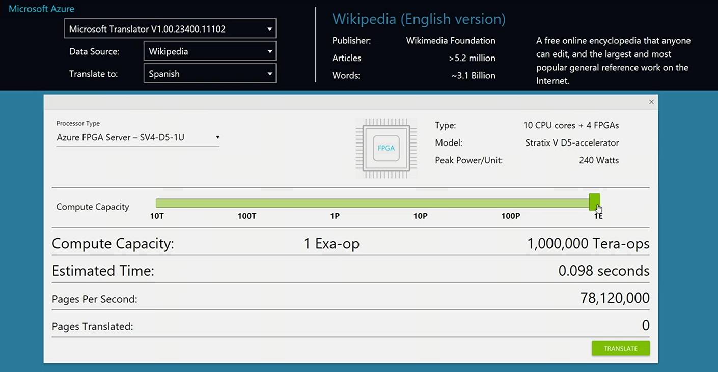 Ignite 2016 上的演示:每秒 1 Exa-op (10^18) 的机器翻译运算能力