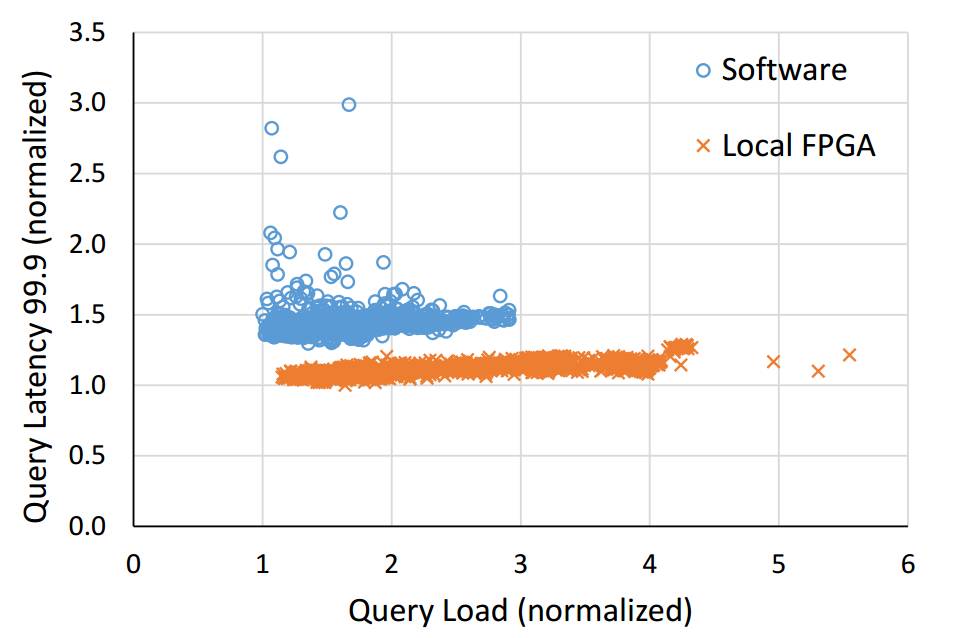 FPGA 不仅降低了必应搜索的延迟,还显著提高了延迟的稳定性。来源:[4]