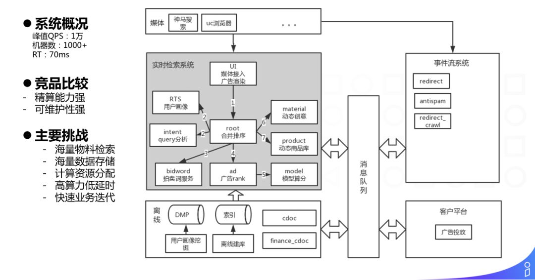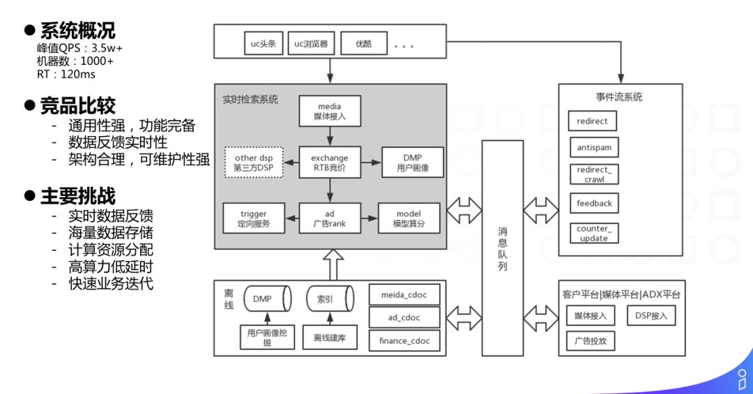 海量数据规模:百亿级的广告物料数据,1亿+的日活用户产生的用户行为+基础特征+标签兴趣数据,还包括了海量的广告图片,创意素材等数据。