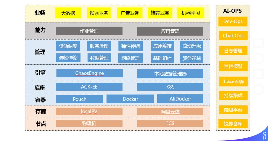 最后是我们的服务治理平台,在容器层主要使用的是 Docker,一层调度主要使用的是 K8S,二层调度使用的是 ChaosEngine 和本地数据管理器,很好的支持了资源调度、弹性伸缩、服务治理、数据管理、应用管理等。通过服务治理平台,我们的上线效率,数据管理,扩容效率相比之前有了很大的提升。目前,服务治理平台不仅仅是一个提效平台,也在做一些如成本优化方面的工作。包括:在线和离线的混部;在线业务潮汐的伸缩容,弹性伸缩,将节省出来的机器应用到模型训练所需要的 MPI 集群和 Hadoop 集群等等。