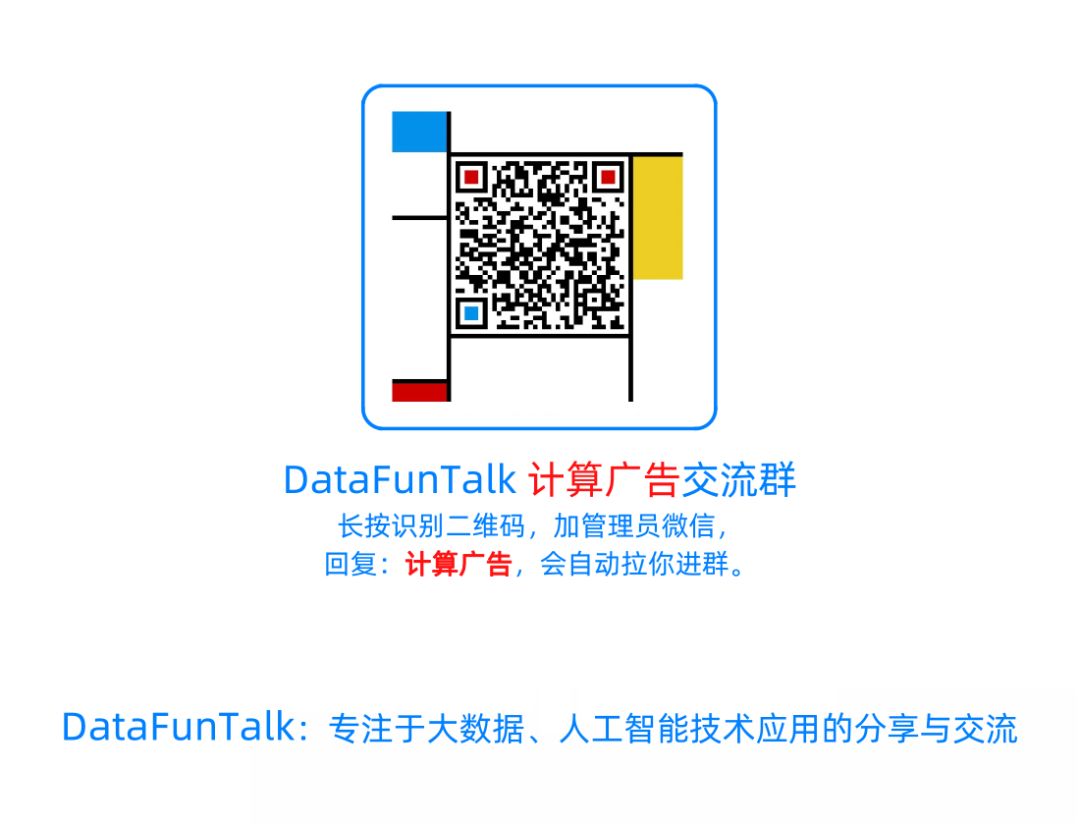 欢迎加入 DataFunTalk 计算广告交流群,与小伙伴们一起讨论计算广告相关问题。加管理员微信 ( 微信号:DataFunTalker ) 或识别下方二维码,回复:计算广告,会自动拉你进群。