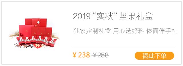 “实秋”坚果礼盒,打包了巴西松子、巴旦木仁、夏威夷果、山核桃仁、黑南瓜子、紫皮腰果6种美味。