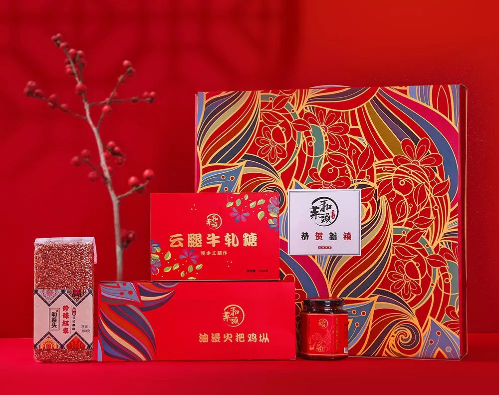 今年春节,和菜头在一批大家耳熟能详的食品原材料上,加入一些云南独有的食材,把最受欢迎的三款组成了“恭贺新禧”礼盒。