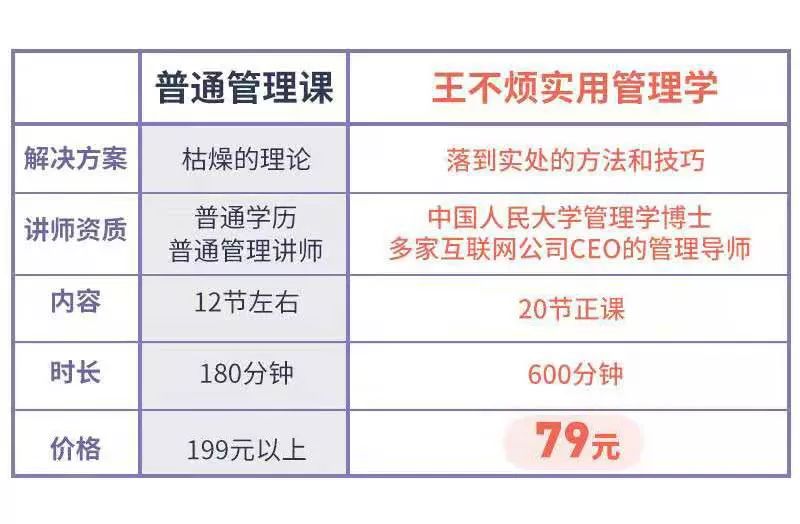 这可能是市面上性价比最高的管理课。现在很多艰深、不实用的管理课,收费都在199元以上,甚至要价上千元。