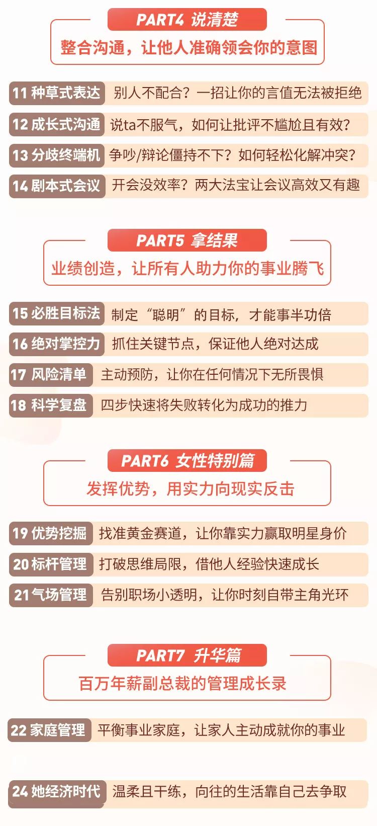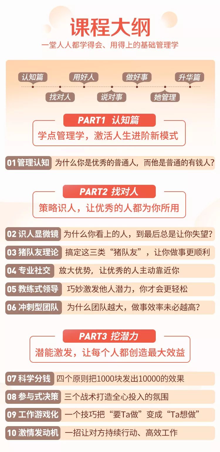 在这门课上,她把多年总结的管理方法,毫无保留地分享给大家。为了让大家有更直观的体会,在这里列出一部分课程内容,供大家参考。