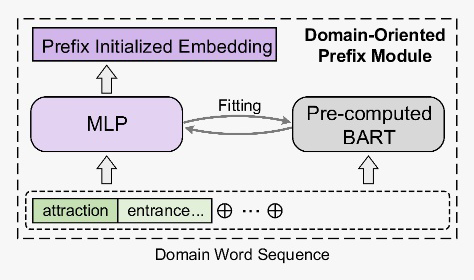 1. 利用 MLP 和预训练的 BART 模型分别得到 domain word 序列的表示,重新训练 MLP 使用 MSE loss 使得 MLP 的输出与预训练的 BART 的 decoder hidden states 相同,以此从预训练模型中解藕出领域知识。